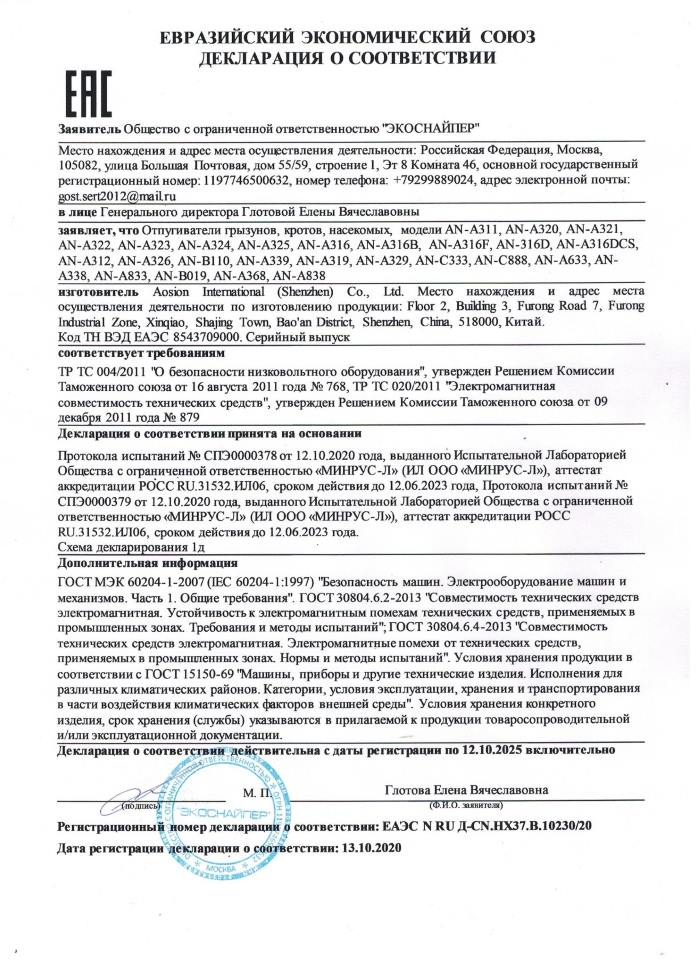 В интернет-магазине «Отпугиватель.ком» вы можете найти отзывы на ультразвуковой отпугиватель мух «Экоснайпер AN-A323», а также приобрести эту модель по самой низкой цене в Чехове.